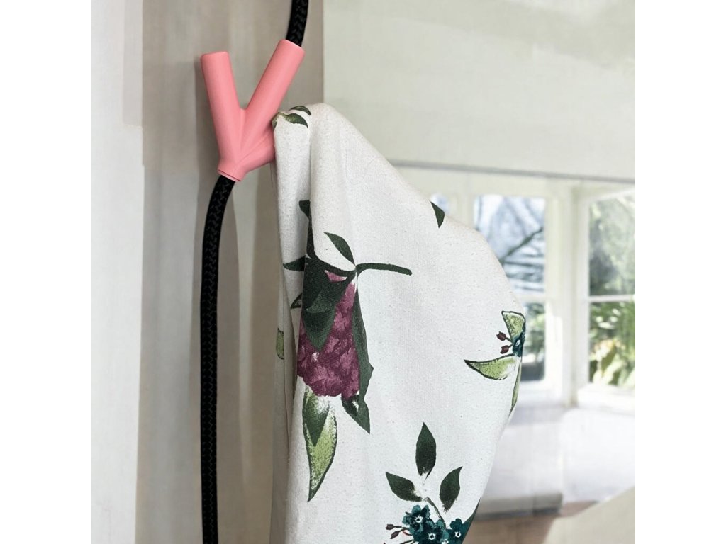 Věšák na laně od Pureinspace je funkční designový prvek, který spojuje čistotu linií s maximální variabilitou. Zavěšený na pevném lanku ukotveném ke stropu, působí lehce a vzdušně, přitom unese víc, než byste čekali.